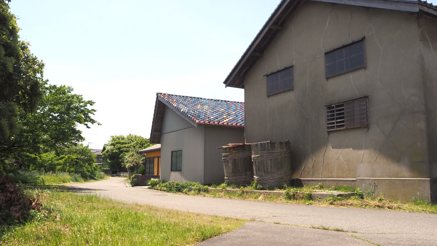 続いて、製造所の最深部から外へ出て、田んぼ側の通りへ。北前船が行き来していた江戸後期~明治期には堀川が流れていて、当時扱っていた商品・製品等はここから廻船に積み込み、荒川河口に停泊している北前船まで運んだそうです。