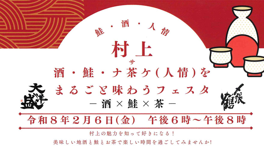 村上の魅力を知って好きになる、おいしい地酒と鮭とお茶で楽しい時間を過ごしてみませんか