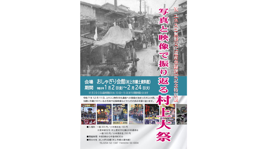 2025年12月11日(木)、ユネスコ無形文化遺産「山・鉾・屋台行事」に追加登録が決まった『村上祭の屋台行事』(村上大祭)。当館に所蔵されている古写真や記録映像などから、その歩みを振り返ります。