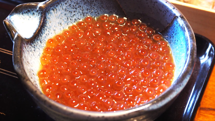 このはらこ、千年鮭 きっかわの職人がひと腹ひと腹選別し、最上級と認めた大粒のものだけを使っているそうです。それはもう、今まで私が食べてきたはらことは別物ですよ。皮はあくまで柔らかく、舌や歯に当たるとプチンと破れて、うま味がブワワッとあふれます。
