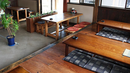 店内は古民家風で、なんとなく懐かしいような、落ち着く感じです。個人的にこの雰囲気、好きです♡ テーブル席、小上がり、奥には広いお座敷があります。