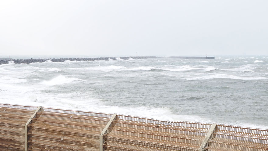 荒れた日本海。岩船港近くにて。